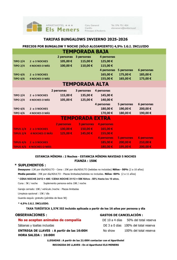 No esperes más para vivir unas vacaciones inolvidables en Andorra. Reserva ahora tu bungalow en Grup Meners y descubre la magia de los Pirineos. Ya sea que busques una escapada romántica, una aventura en familia o un retiro con amigos, nuestros bungalows ofrecen el espacio y la comodidad que necesitas para disfrutar al máximo de tu estancia.